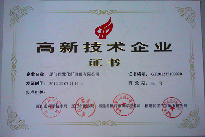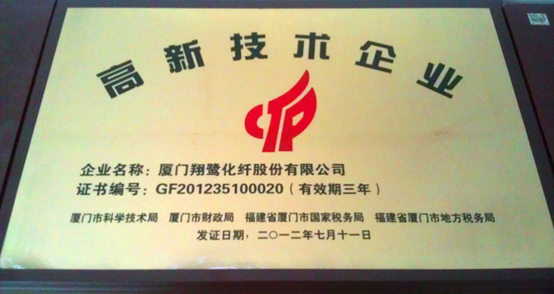 祝賀翔鷺化纖榮獲“高新技術(shù)企業(yè)”“納稅特大戶”稱號(hào)根據(jù)《高新技術(shù)企業(yè)認(rèn)定管理辦法》和《高新技術(shù)企業(yè)認(rèn)定管理工作指引》有關(guān)規(guī)定及全國(guó)高新技術(shù)企業(yè)認(rèn)定管理工作領(lǐng)導(dǎo)小組辦公室《關(guān)于廈門市2012年第二批高新技術(shù)企業(yè)復(fù)審備案申請(qǐng)的復(fù)函》現(xiàn)確認(rèn)廈門翔鷺化纖股份有限公司為高新技術(shù)企業(yè),頒發(fā)“高新技術(shù)企業(yè)證書(shū)”授予“高新技術(shù)企業(yè)”稱號(hào)。