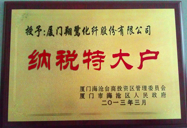 為表彰各企業(yè)對(duì)提升海滄區(qū)經(jīng)濟(jì)綜合競(jìng)爭(zhēng)力,增加財(cái)政收入,促進(jìn)社會(huì)全面進(jìn)步作出的重要貢獻(xiàn),海滄區(qū)召開(kāi)2012年度納稅大戶暨創(chuàng)建商標(biāo)品牌表彰大會(huì),授予我司“納稅特大戶”稱號(hào),并獎(jiǎng)勵(lì)10萬(wàn)元。
