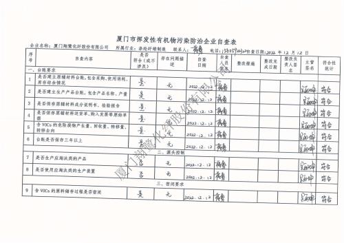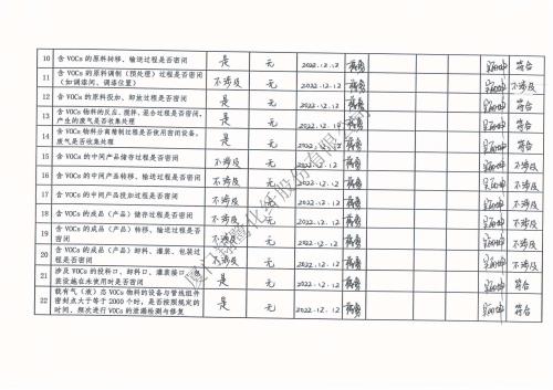 2022年第四季度揮發(fā)性有機(jī)物整治企業(yè)自查表